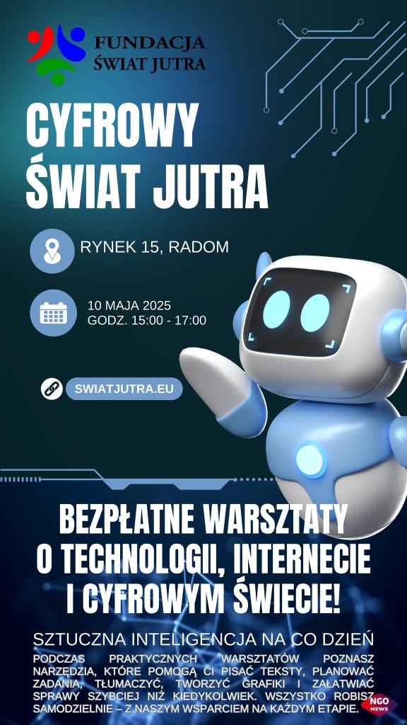 Po raz pierwszy na wydarzeniu zagości Fundacja Świat Jutra, która przygotowała coś dla miłośników nowoczesnych technologii. Podczas warsztatów uczestnicy będą mogli zanurzyć się w cyfrowym świecie, poznając podstawy obsługi sztucznej inteligencji i jak ona może ułatwić Ci życie? Przyjdź na bezpłatne warsztaty i przetestuj AI na żywo. To doskonała okazja szczególnie dla seniorów i młodszych osób chcących nauczyć się czegoś nowego w przyjaznej atmosferze.