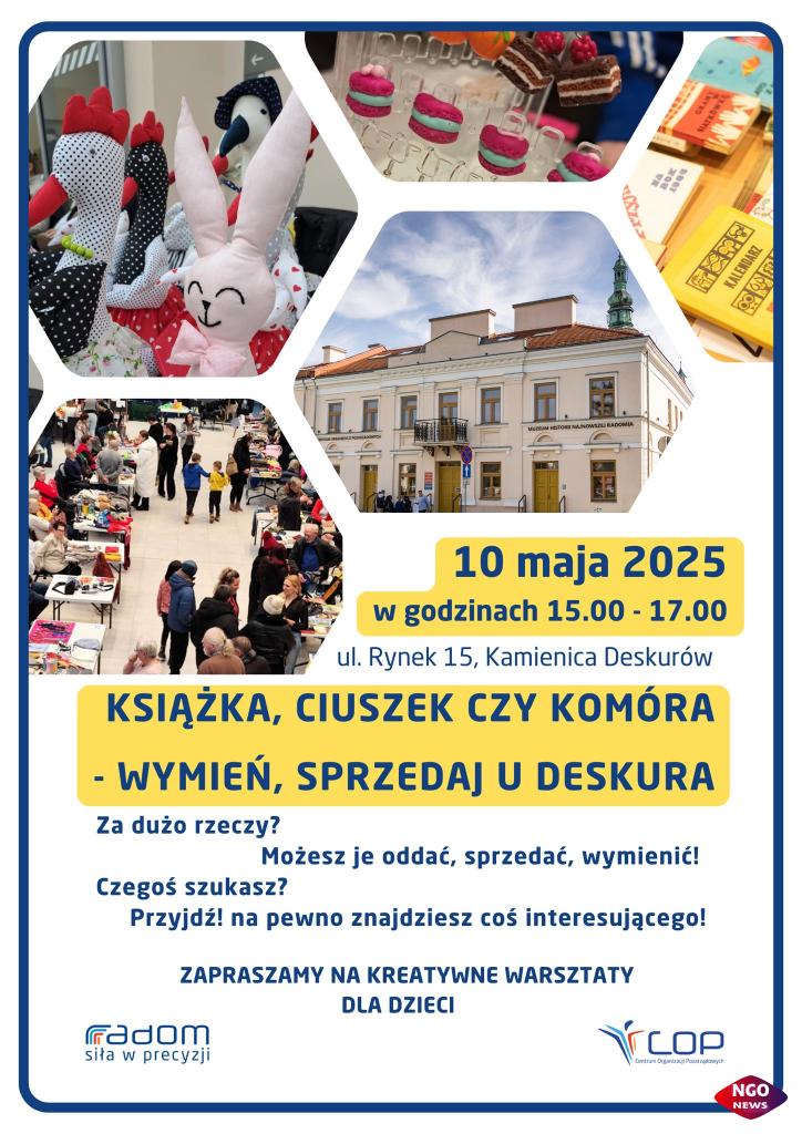 Już 10 maja 2025 roku Radom a dokładnie w Centrum Organizacji Pozarządowych przy ul. Rynek 15 po raz kolejny stanie się miejscem wyjątkowego spotkania dla wszystkich miłośników lokalności, ekologii i dobrej zabawy! Na mieszkańców czeka nie tylko pchli targ, pełen unikalnych skarbów, ale także twórcze warsztaty, akcje społeczne i zbiórki, które pozwolą spędzić ten dzień aktywnie i z wartościami.